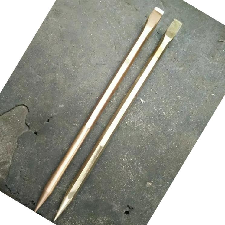 防爆尖撬棍,以鈹青銅合金和鋁青銅合金為主要原料,經過加工處理后都能起到防爆功能,特別適合于在易燃易爆的工作場所使用。由于銅的良好導熱性能及幾乎不含碳的特質,使工具和物體摩擦或撞擊時,短時間內產生的熱量被吸收及傳導,另一原因由于銅本身相對較軟,摩擦和撞擊時有很好的退讓性,不易產生微小金屬顆粒,于是我們幾乎看不到火花。